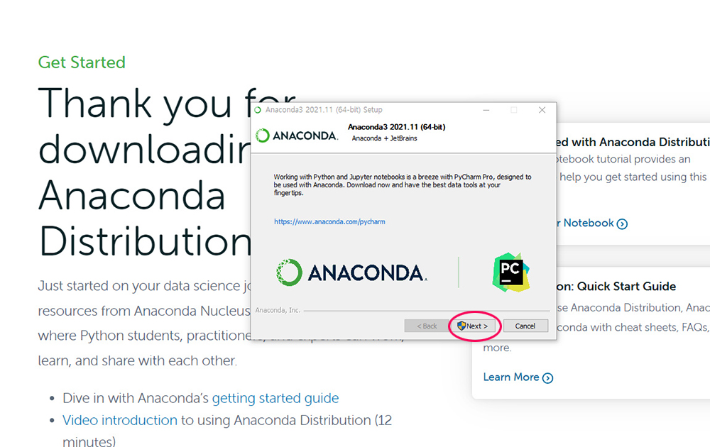 아나콘다 공식 사이트에서