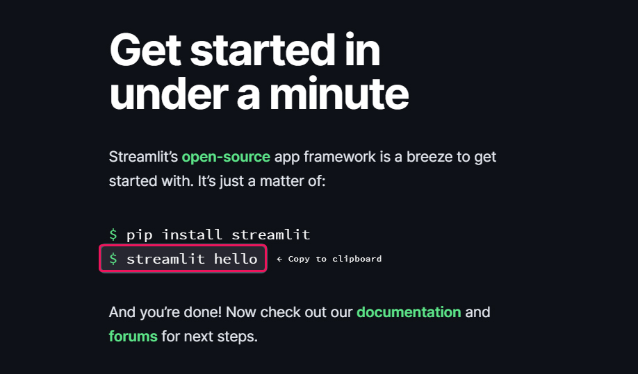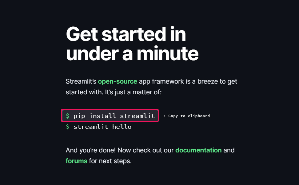 스트림릿 사이트에 설치방법이 있는데