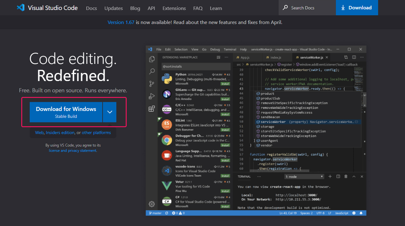 Visual Studio Code is a code editor redefined and optimized for building and debugging modern web and cloud applications. Visual Studio Code is free and available on your favorite platform - Linux, macOS, and Windows.