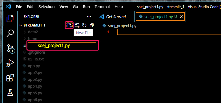 파이썬 새파일 생성하고, 스트림릿으로 웹에 띄우기