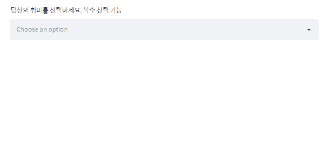 st.multiselect('당신의 취미를 선택하세요. 복수 선택 가능', language)