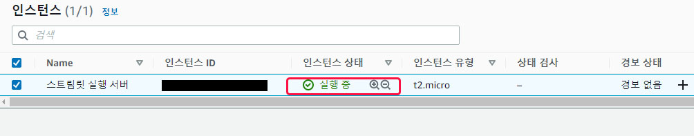 인스턴스가 실행중으로 뜹니다.