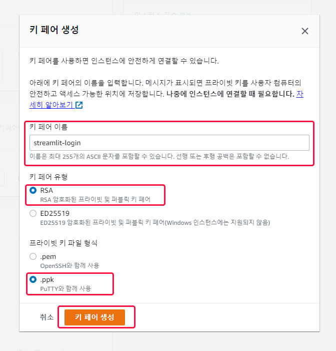 키 페어 유형은 RSA (RSA 암호화된