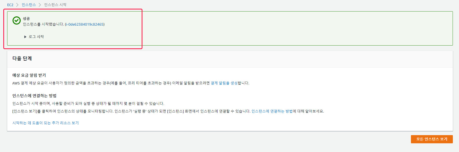 [인스턴스 시작] 을 누룹니다.