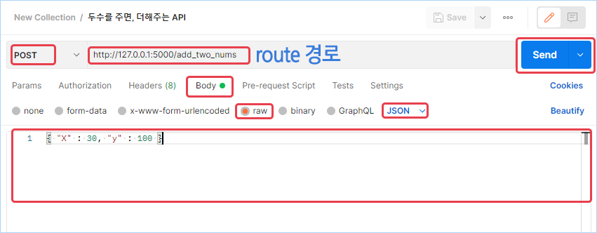 # 클라이언트로부터 두 수를 받는다. request 라이브러리 사용