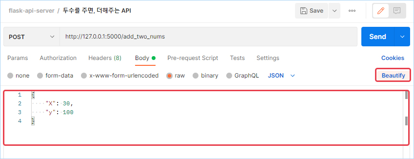 [Beautify] 를 클릭하면