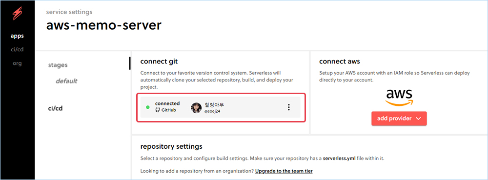Serverless Framework 를 이용한 Github 코드를 AWS에 배포하기(CI/CD)