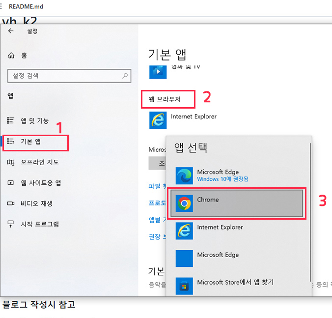 기본 앱에서 웹 브라우저 설정을