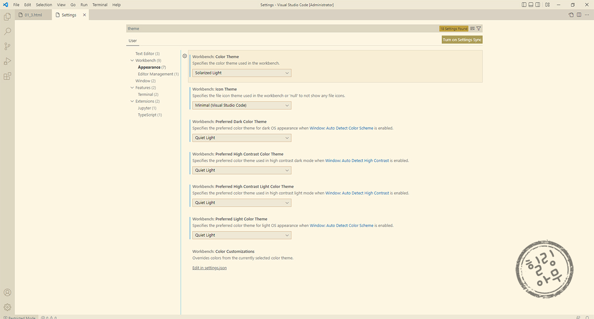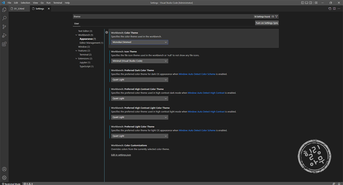 Visual Studio Code(비주얼 스튜디오 코드) 테마 바꾸기