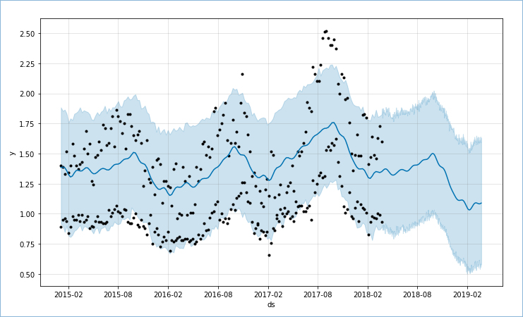 avocado_prophet_df.columns = ['ds', 'y']