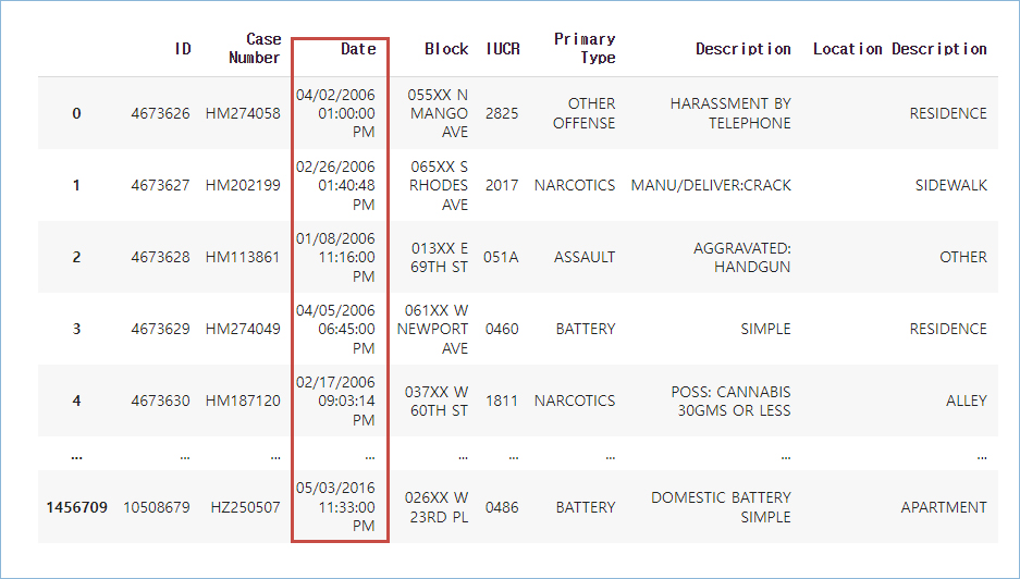 chicago_df['Date'] = pd.to_datetime(chicago_df['Date'], format='%m/%d/%Y %I:%M:%S %p')