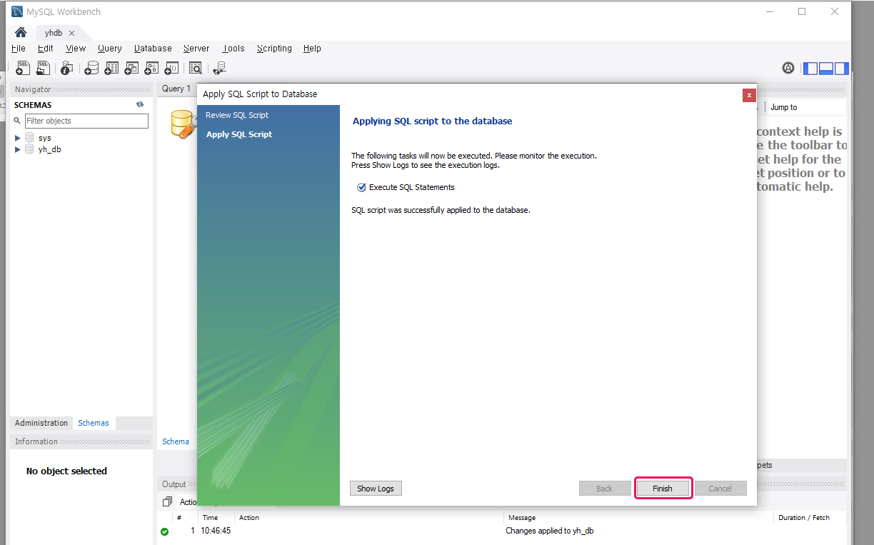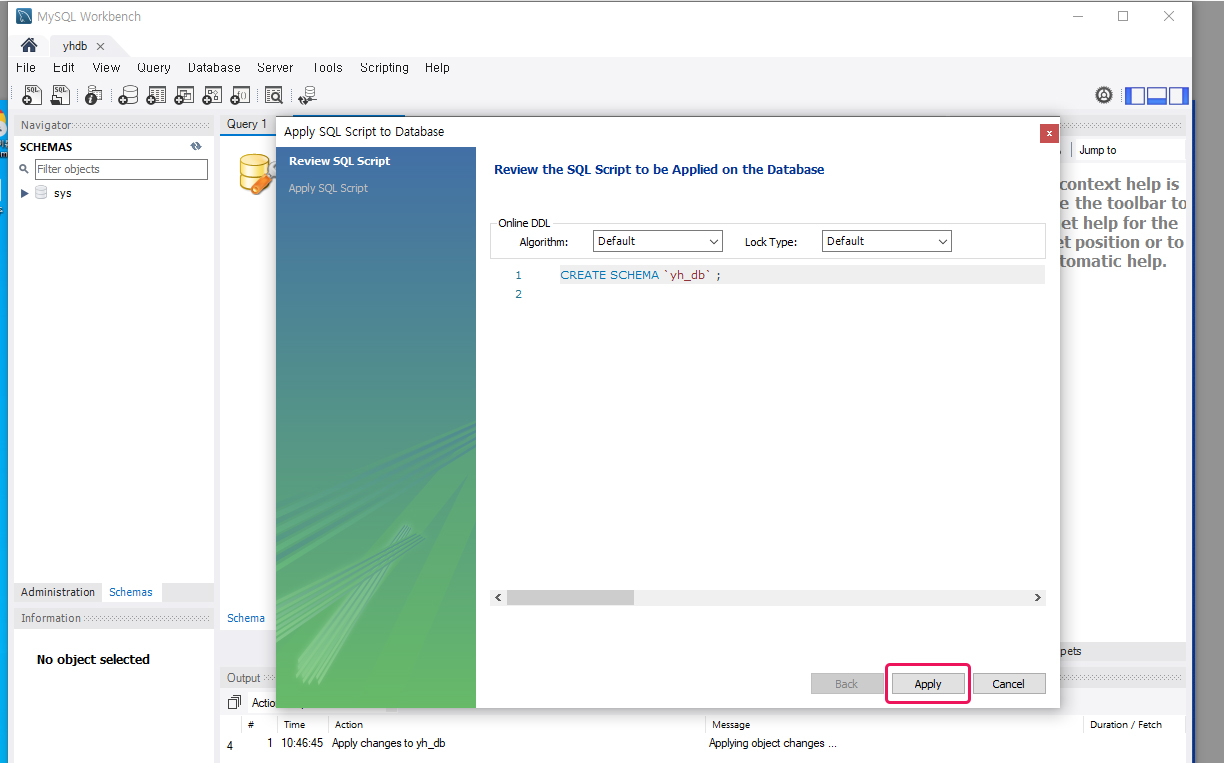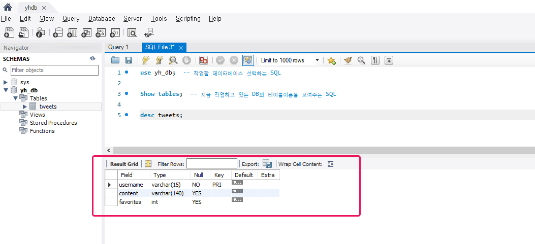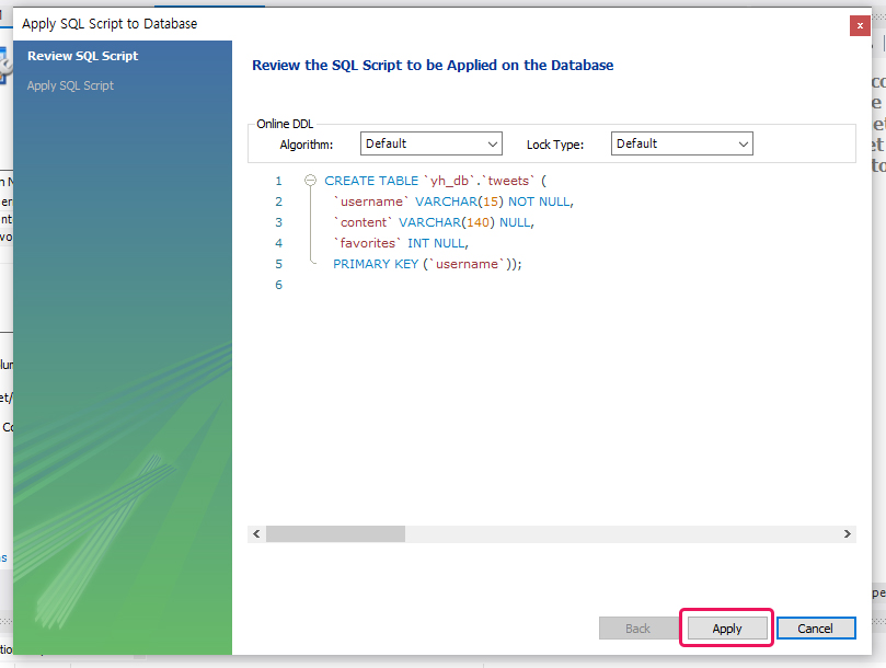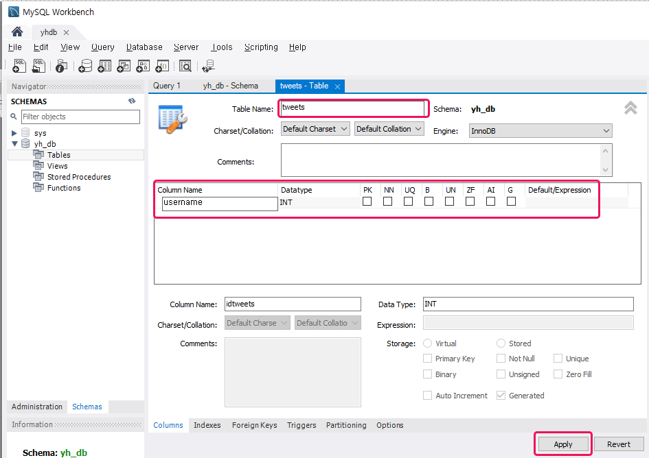 왼쪽에 생성한 DB에서 삼각형을 누르면