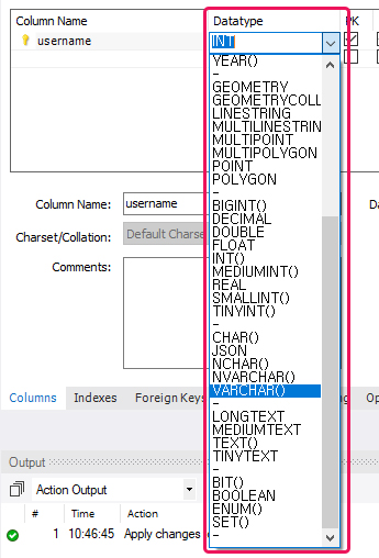 | NN | Not Null (체크시, 안에 값이 없으면 안됨) |