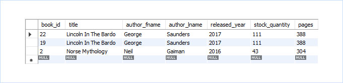 from books limit 3; -- 맨 위에서부터 가져온다.