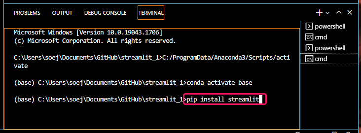 pip install streamlit |