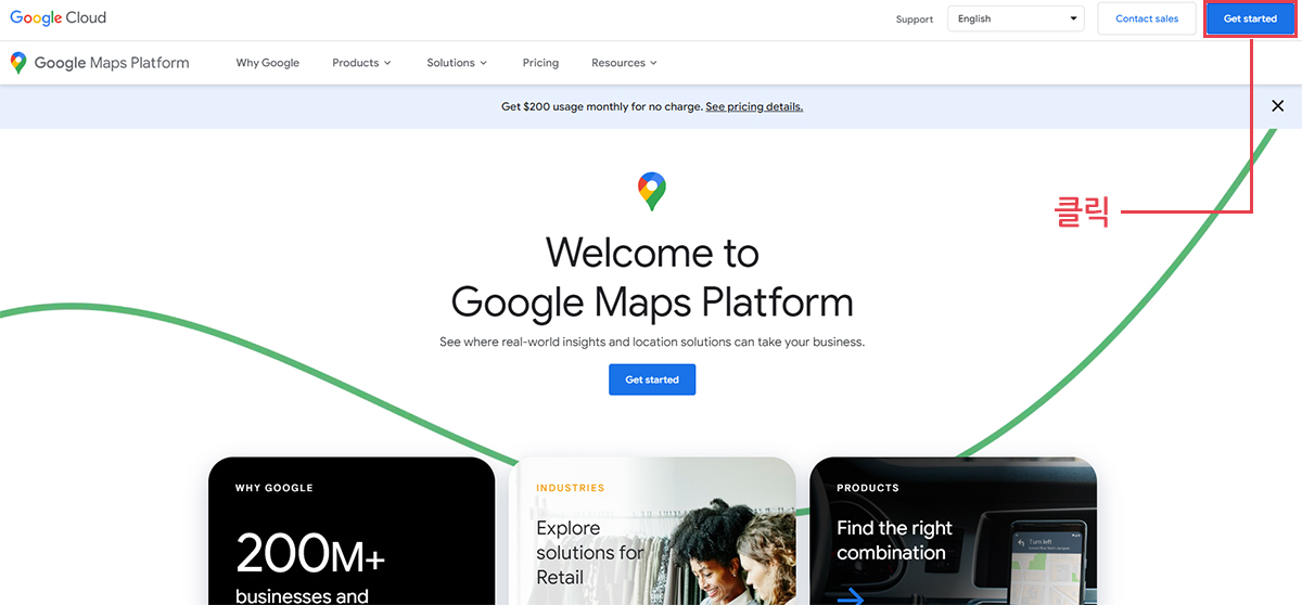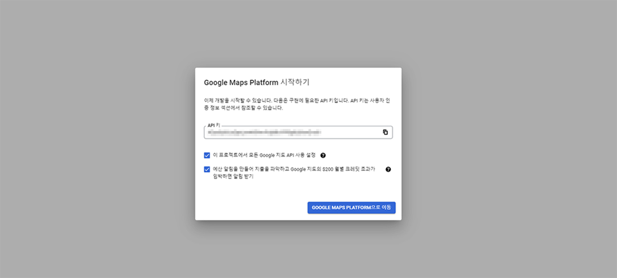구글 클라우드의 MAPS API 페이지로