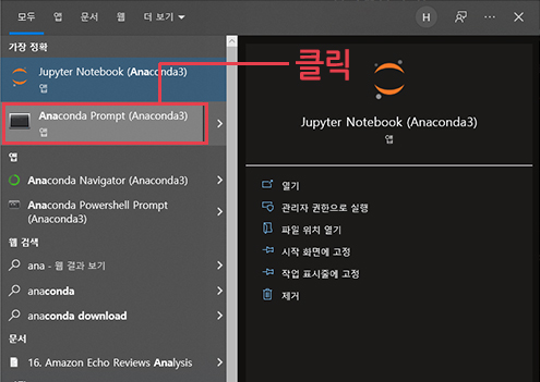 그중에서 Anaconda Prompt를 클릭합니다.
