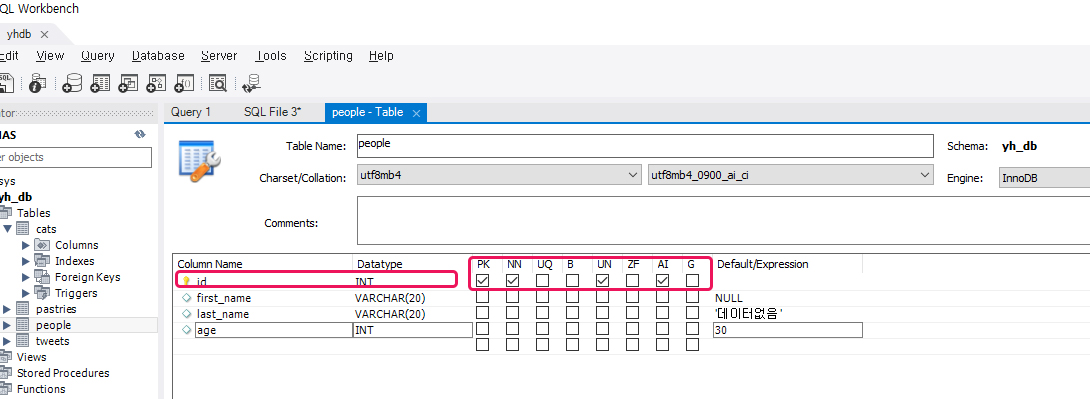 MySQL Workbench를 이용해서 테이블 생성하기 a. PK, NN, AI, UN
