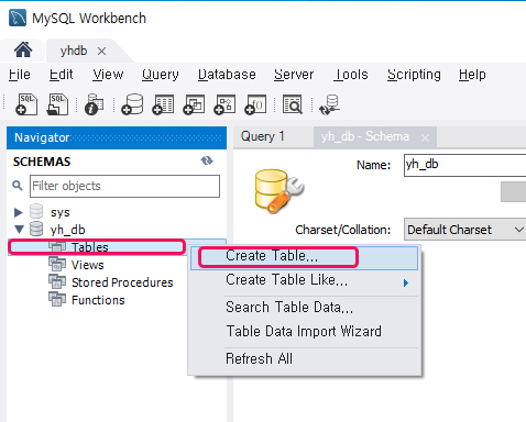 MySQL Workbench를 이용해서 테이블 생성하기